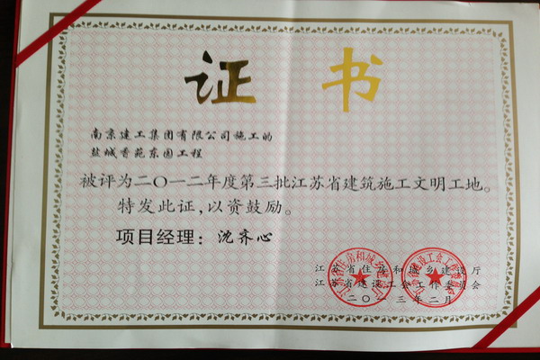 南京建工集團(tuán)六公司鹽城香苑東園項(xiàng)目喜獲“省級文明工地” 日前,由南京建工集團(tuán)第六工程公司承建的鹽城香苑東園項(xiàng)目喜獲“2012年度第三批江蘇省建筑施工文明工地”。 香苑東園工程位于鹽城市城南新區(qū)人民南路,總建筑面積約475000平方米。該工程建筑面積大、棟號多,管理難度較高。自開工伊始,項(xiàng)目部嚴(yán)格參照創(chuàng)建“文明工地”相關(guān)標(biāo)準(zhǔn),精心組織,扎實(shí)工作,制訂了創(chuàng)建“省級文明工地”管理規(guī)定,為爭創(chuàng)省級文明工地打下了堅實(shí)的基礎(chǔ)。