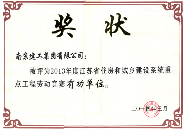 南京建工集團(tuán)被評為2013年度全省住建系統(tǒng)重點工程勞動競賽有功單位