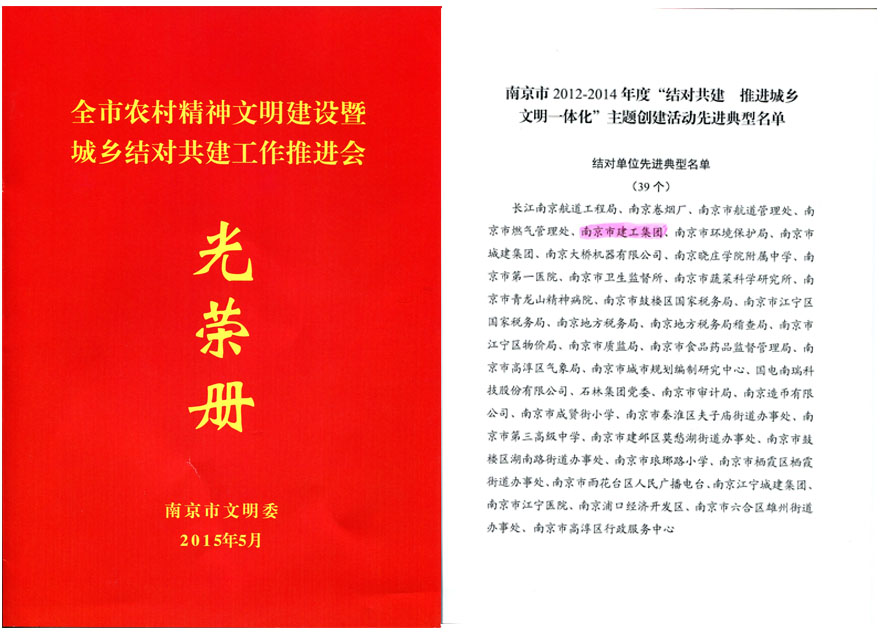 ? 南京建工集團榮獲南京市文明委“結對共建,推進城鄉(xiāng)文明一體化“主題創(chuàng)建活動先進典型