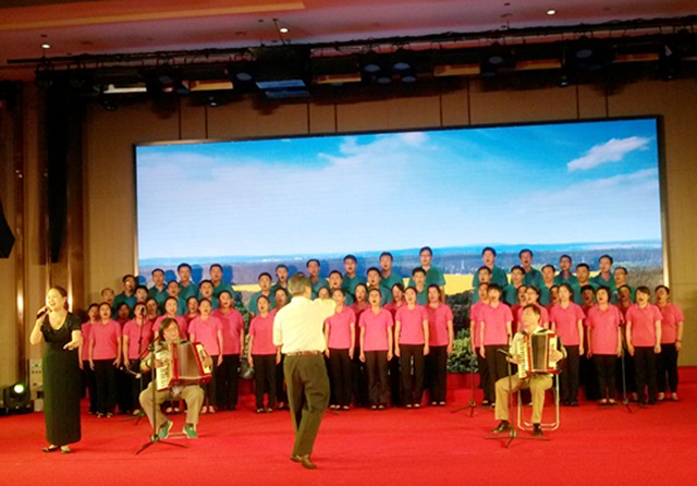 作為會(huì)議的開場(chǎng)節(jié)目,集團(tuán)合唱隊(duì)高歌一曲《我的祖國(guó)》,博得全體與會(huì)者的熱烈掌聲,受到會(huì)議主辦方—鐵心橋街道工委的高度贊揚(yáng)。