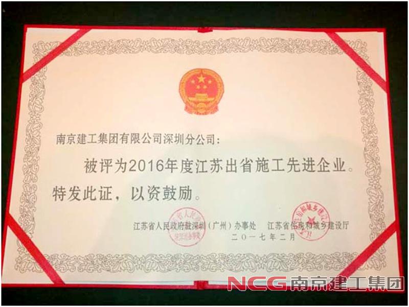 會(huì)上,授予南京建工集團(tuán)深圳分公司2016年度江蘇出省施工先進(jìn)企業(yè)稱號(hào)。