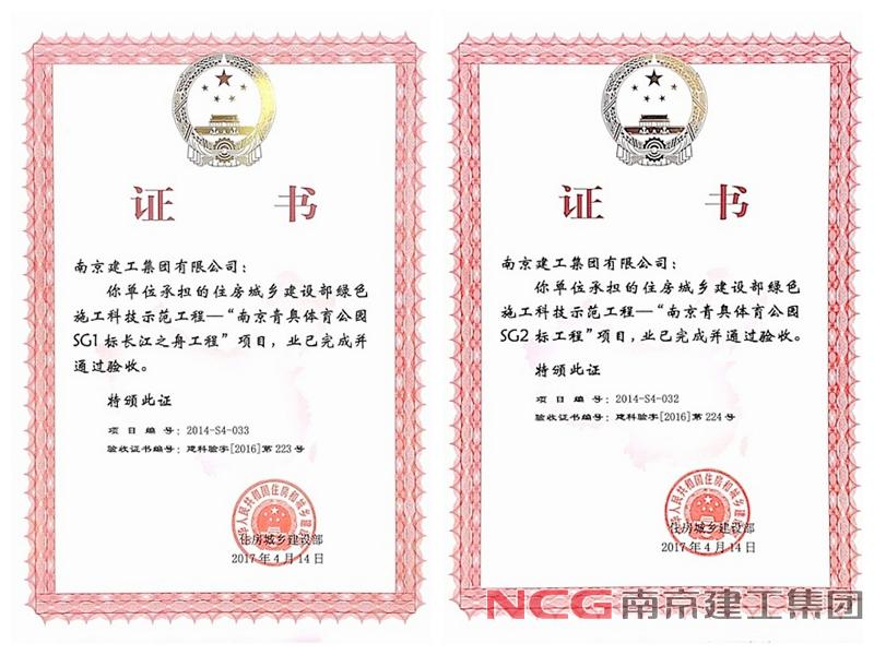 集團(tuán)兩項(xiàng)工程獲住建部綠色施工科技示范工程驗(yàn)收證書