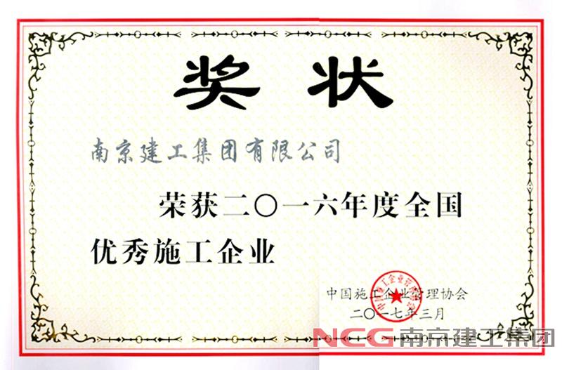 集團(tuán)榮獲2016年度全國(guó)優(yōu)秀施工企業(yè)稱號(hào)
