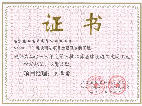 南京建工集團(tuán)六公司萬(wàn)科九都薈工程喜獲“省級(jí)文明工地”