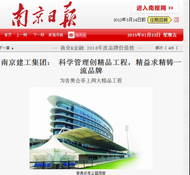 新年伊始,南京日?qǐng)?bào)對(duì)集團(tuán)進(jìn)行宣傳,必將會(huì)對(duì)企業(yè)社會(huì)形象的展示和提升起到積極的作用。站在新年的起點(diǎn)上,南京建工人將用自己智慧和勤奮,為城市建設(shè)帶來(lái)更多的精品工程,締造更多的輝煌業(yè)績(jī)。 |