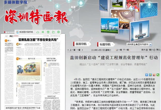 活動啟動當日,南京建工集團與鹽田區(qū)115個在建項目的220家建設、施工、監(jiān)理等企業(yè)一道參與了該項行動。深圳特區(qū)報對此進行了專題報道。
