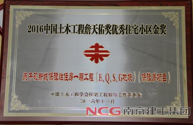 燕子磯一期工程榮獲“詹天佑獎(jiǎng)優(yōu)秀小區(qū)住宅金獎(jiǎng)”