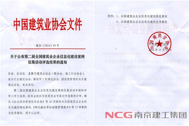集團(tuán)信息化建設(shè)榮獲“全國(guó)建筑業(yè)信息化建設(shè)特優(yōu)案例獎(jiǎng)”