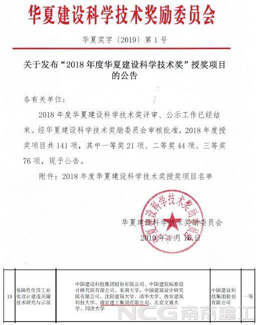 課題《保障性住房工業(yè)化設計建造關鍵技術研究與示范》榮獲華夏建設科學技術獎一等獎。該課題是集團與東南大學產學研合作的重要成果,建立了新型模架免拆模工業(yè)化成套技術,是裝配式建筑領域一項重大技術突破。